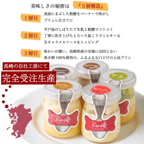 生産数が少なく市場出回ることのない長崎県産希少卵を使用したふるふるなくちどけのプリンに、平戸島唯一守り継がれる酪農家育ちの絞りたて生乳を、身体に優しい未精製の九州産粗糖でことこと炊き上げた、ミルキーな生キャラメルソースをトッピング。